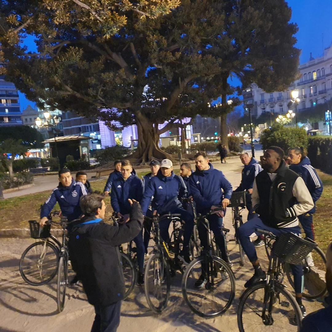 Voor veel activiteiten is het transport per fiets. Daarom werden deze als eerste activiteit opgehaald. Valencia is geen Amsterdam, oppassen geblazen op de smalle tweerichtingsfietspaden. In het hotel werd een lunch genuttigd voor de middagtraining.